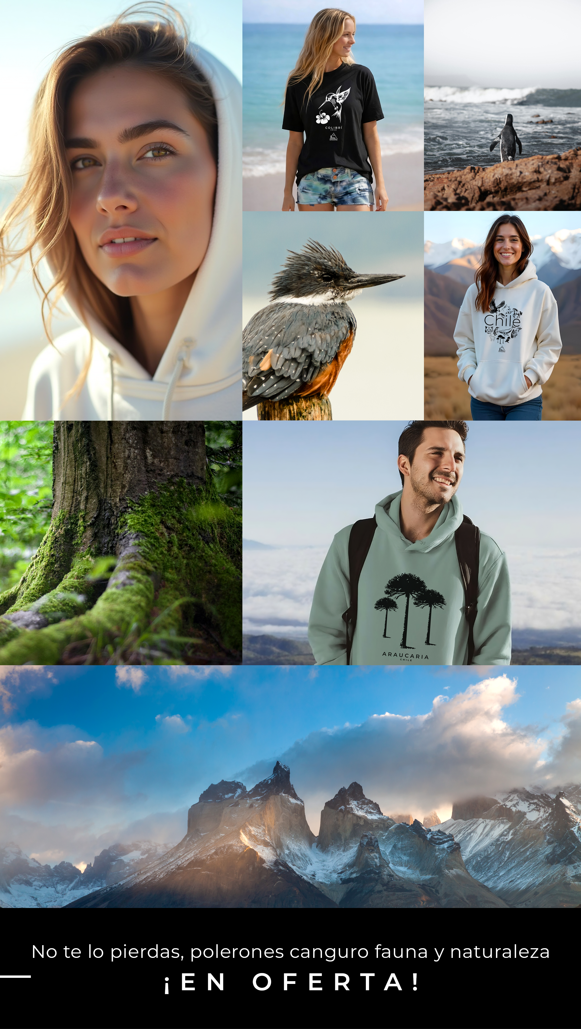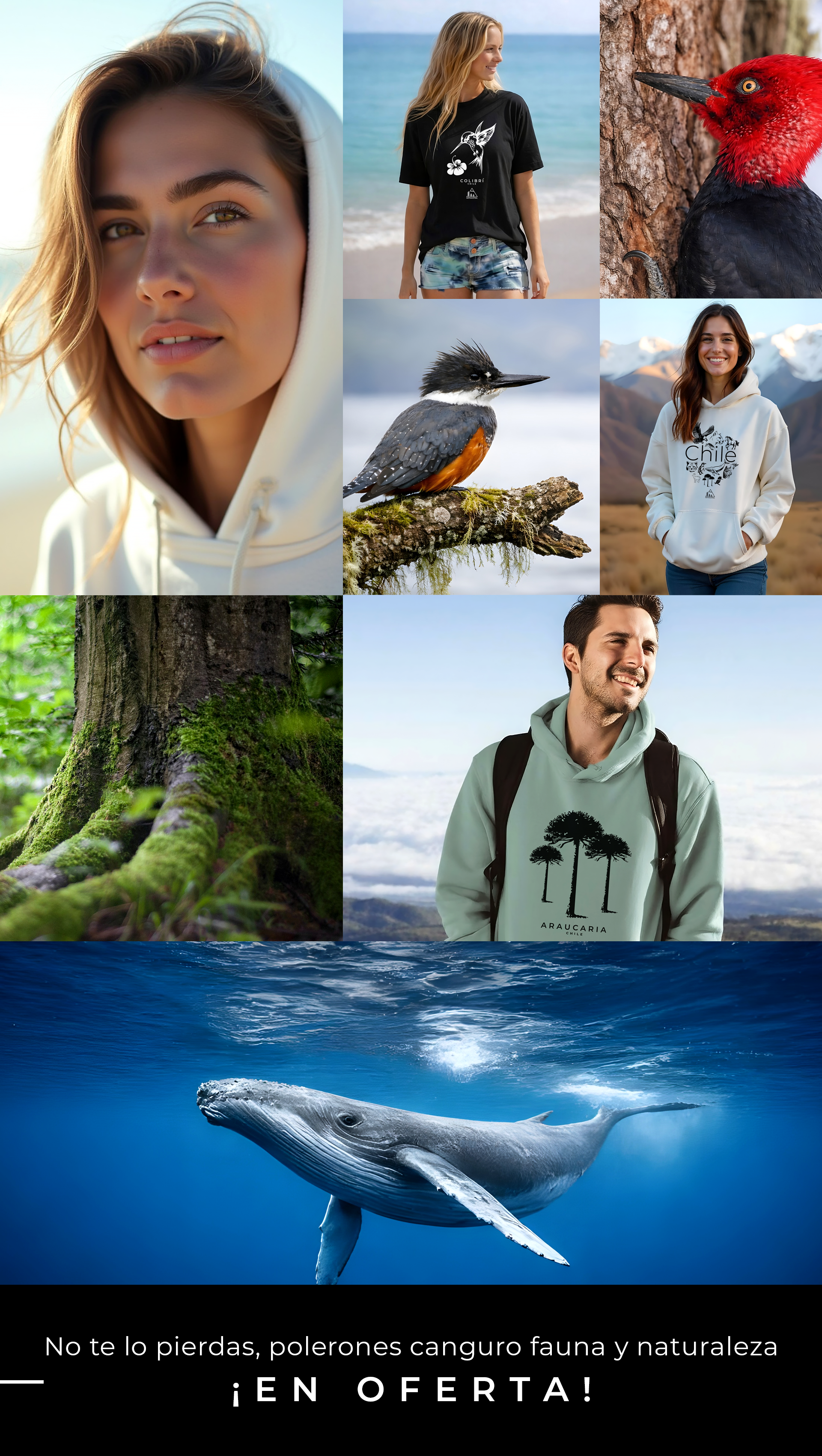Inspirados en la fauna y naturaleza de Chile, ofrecemos polerones y poleras con diseños únicos. Cada diseño es realizado A PEDIDO, pensado especialmente para ti.