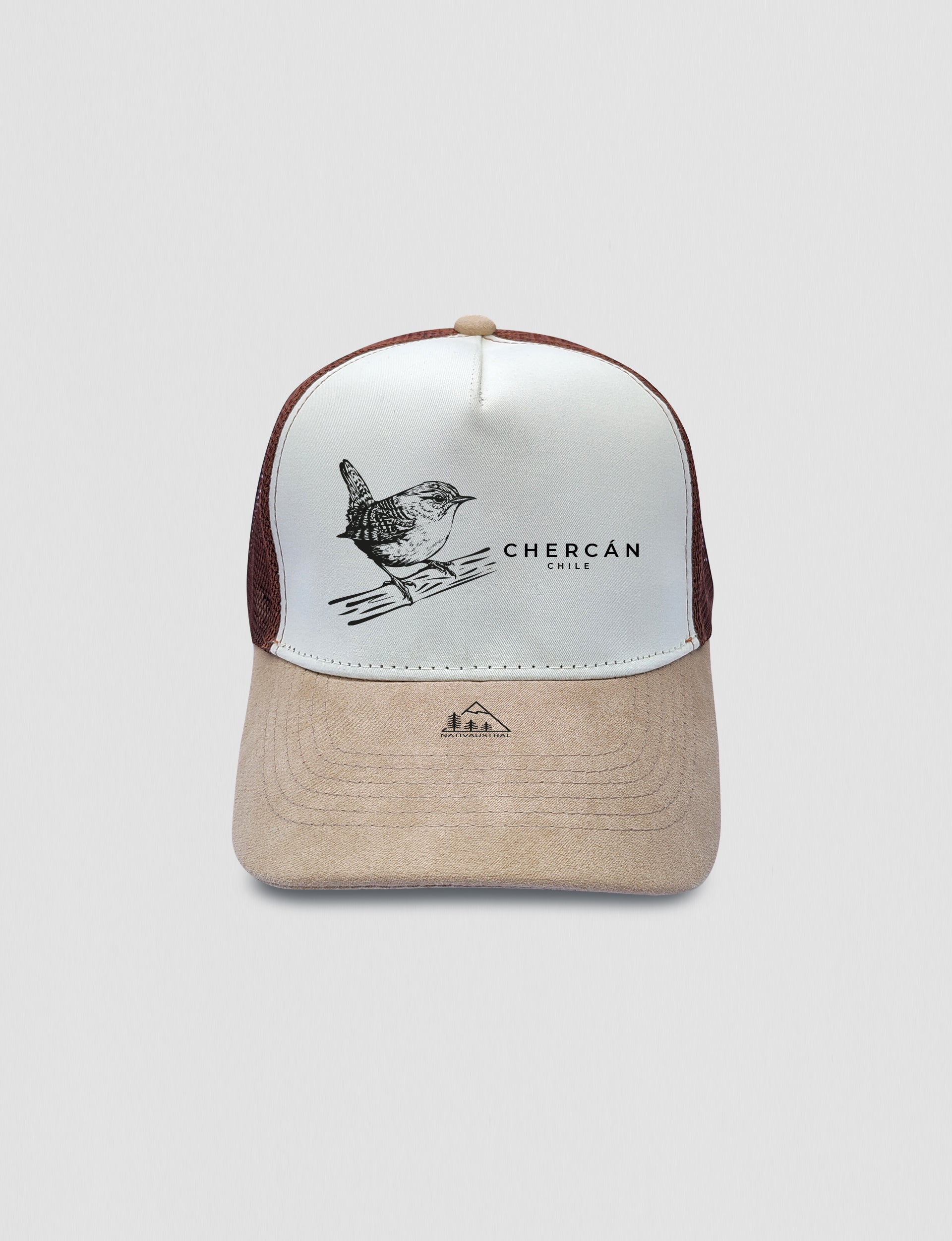 - Visera jockey café/ blanco de gamuza.