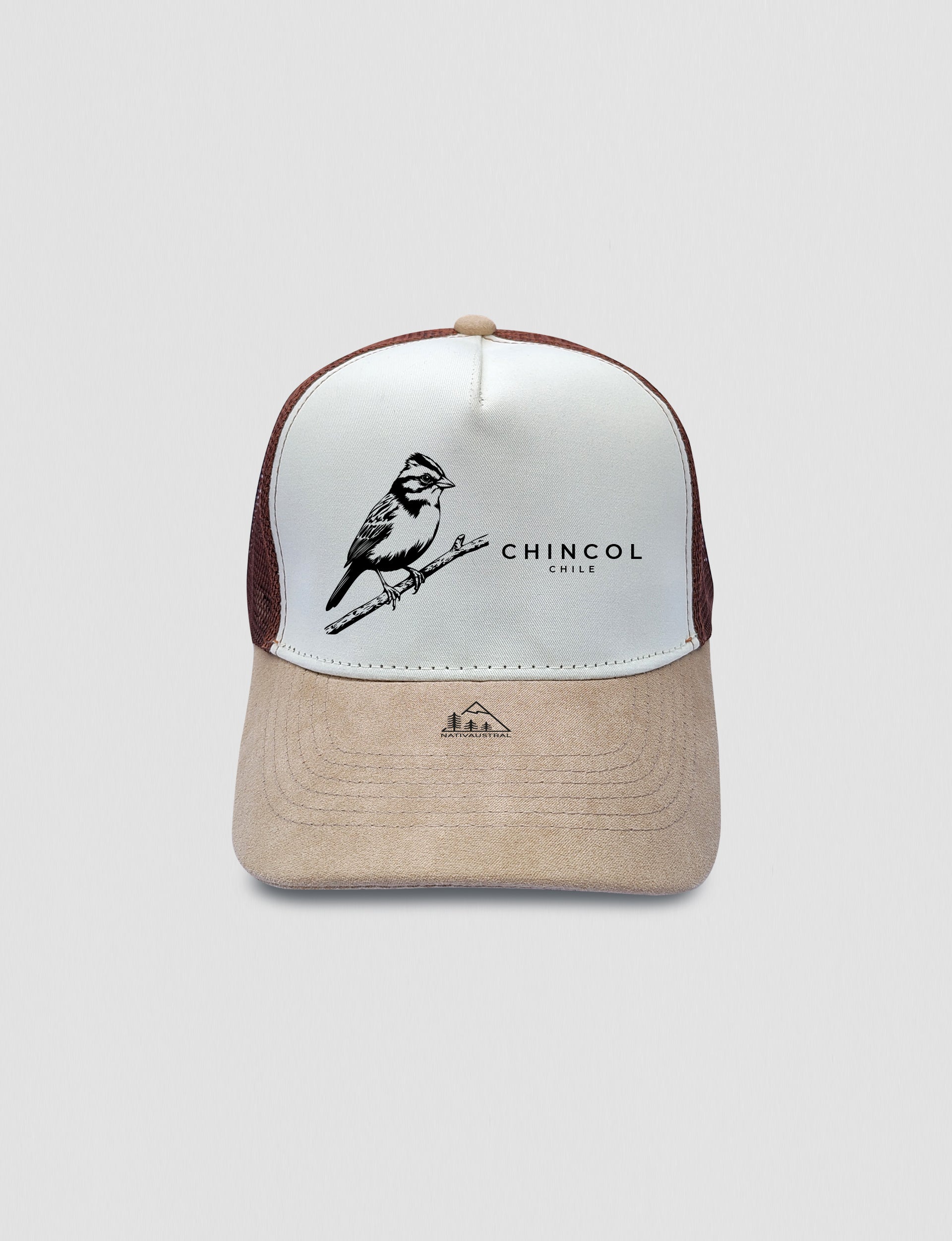 - Visera jockey café/ blanco de gamuza.