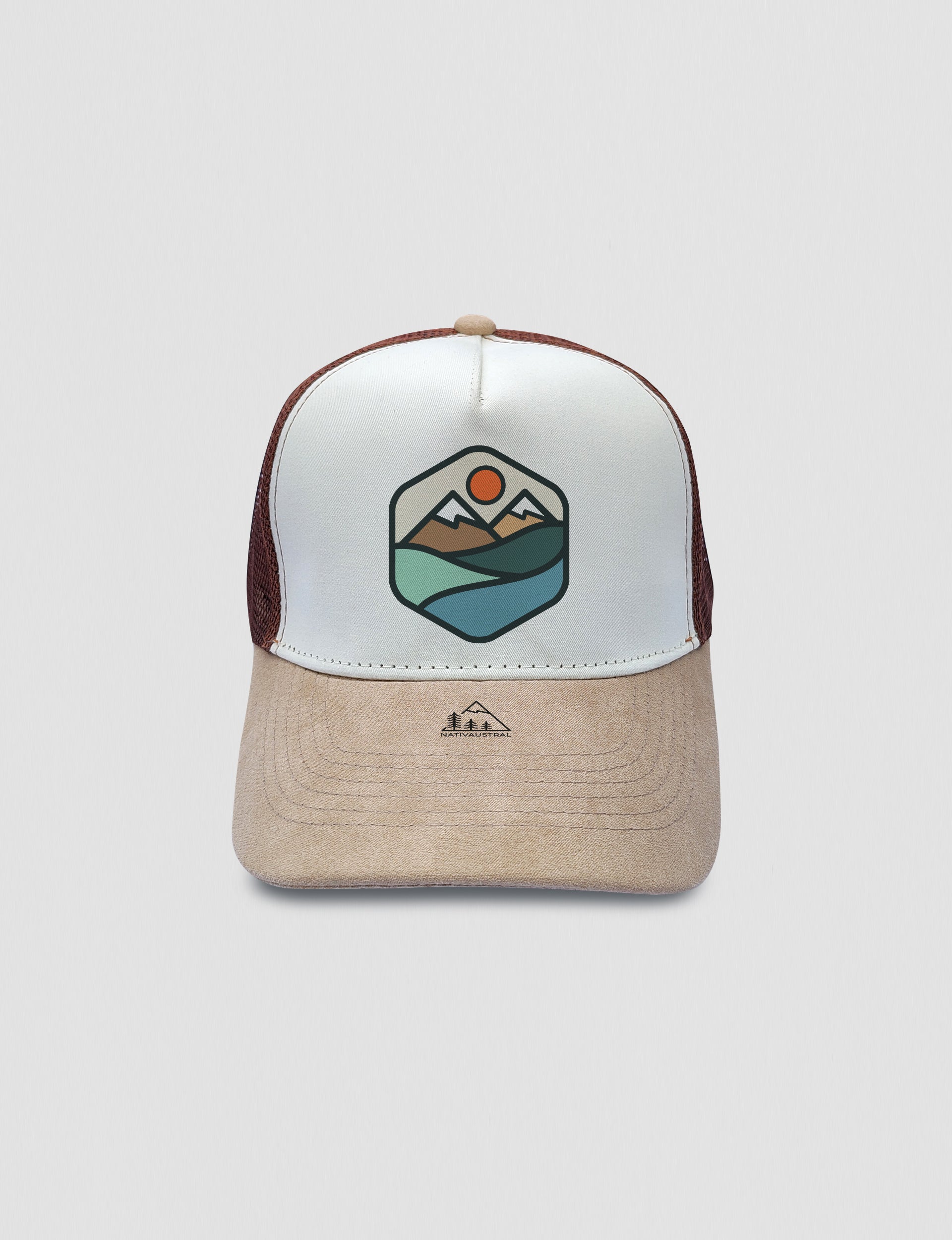 - Visera jockey café/ blanco de gamuza.