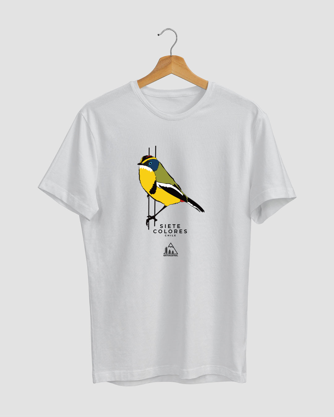 Pequeño, inquieto y difícil de atrapar con la mirada, el siete colores es imposible de olvidar cuando muestra su plumaje lleno de vida. Una polera cómoda y auténtica, perfecta para cualquier ocasión, ideal para quienes llevan consigo la pasión y el encanto de nuestra fauna.