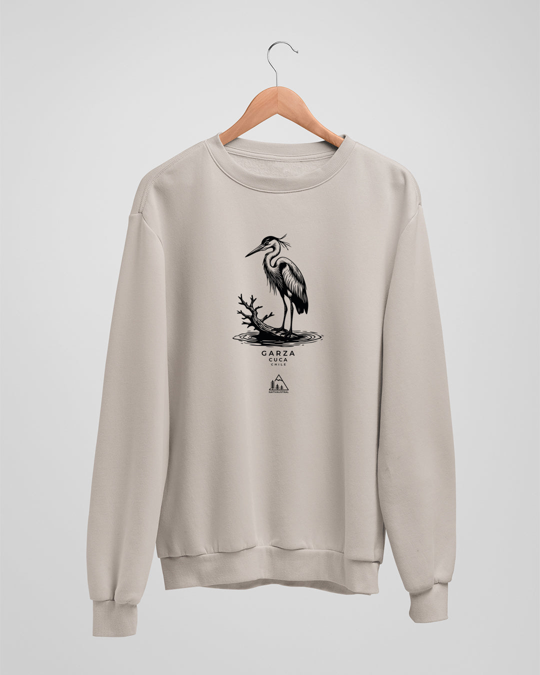Gracia, serenidad y naturaleza: así es la garza cuca. Polerón cómodo y versátil, pensado para quienes aman la belleza natural de Chile.