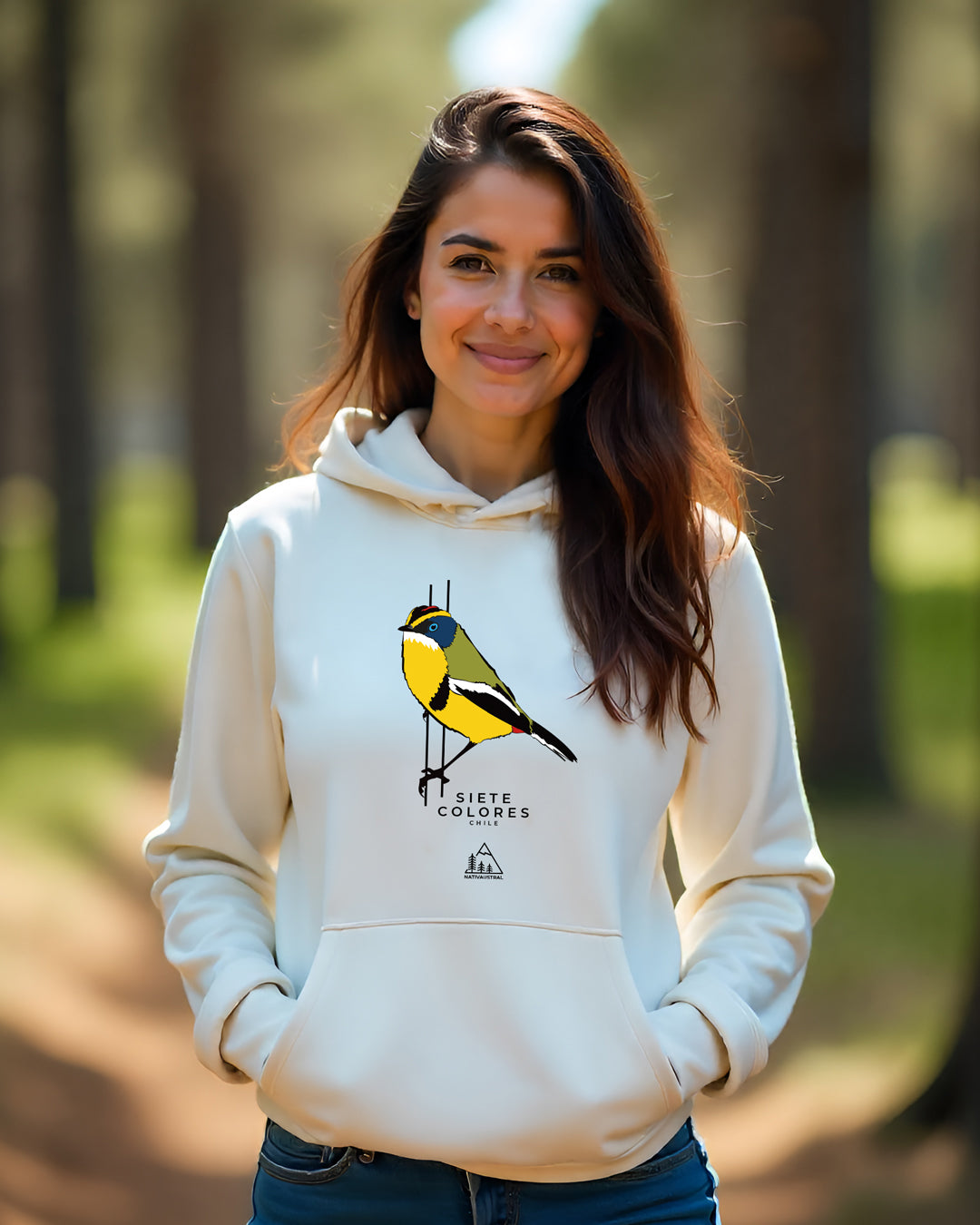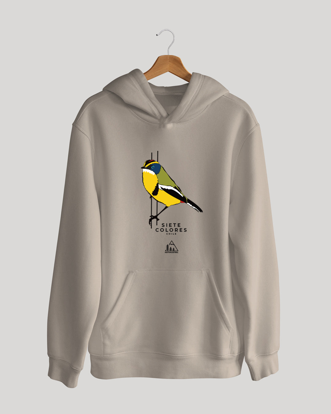 Pequeño, inquieto y difícil de atrapar con la mirada, el siete colores es imposible de olvidar cuando muestra su plumaje lleno de vida. Un polerón cómodo y auténtico, perfecto para cualquier ocasión, ideal para quienes llevan consigo la pasión y el encanto de nuestra fauna.